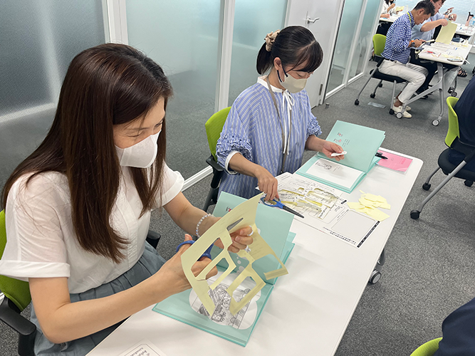 「絵本を届ける運動」は、公益社団法人シャンティ国際ボランティア会で実施されている日本語の絵本に現地の言葉の翻訳シールを貼って紛争・災害・貧困などで絵本が不足しているアジア地域に、日本から絵本を届ける活動です。2024年度は全社で延べ300名を超える従業員が「絵本を届ける運動」に参加し、合計200冊の翻訳絵本を作成・寄贈しました。